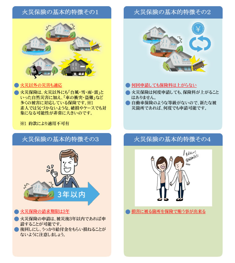 火災保険は、被災にあう度に使用することが可能です。ただし、過去に申請した箇所を修繕せずに繰り返し申請することは出来ません。