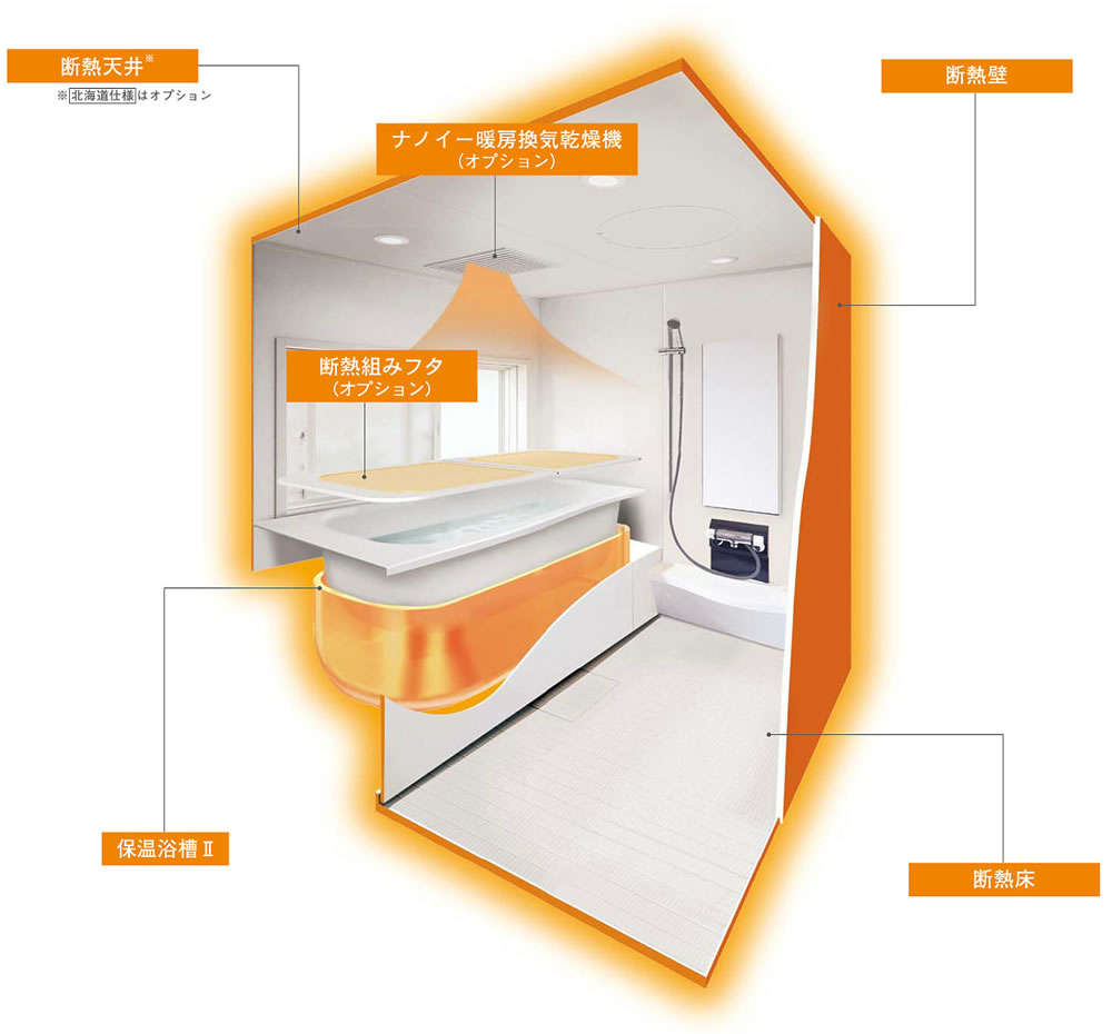 浴槽まるごとあたたか。快適さと省エネを両立。天井・壁・浴槽・床 断熱仕様