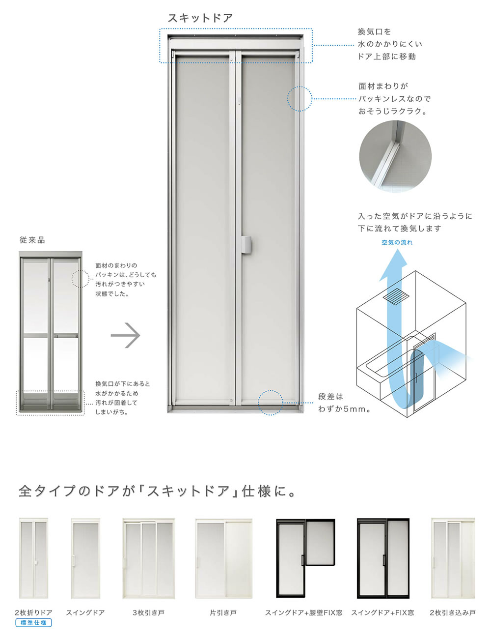 お掃除性と換気性能を両立した新しいドアをラインナップ。換気口がドアの上にあるからおそうじラクラク。