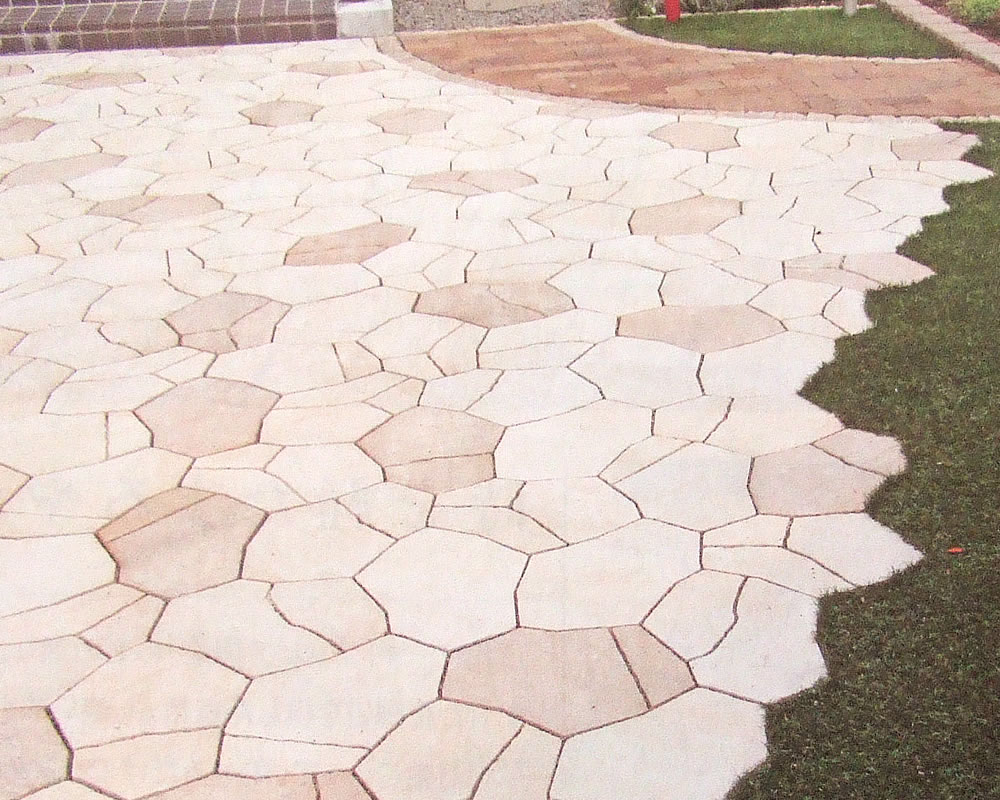 擬似目地が施された商品を並べるだけで、本格的な石張りの世界を容易に演出できます。